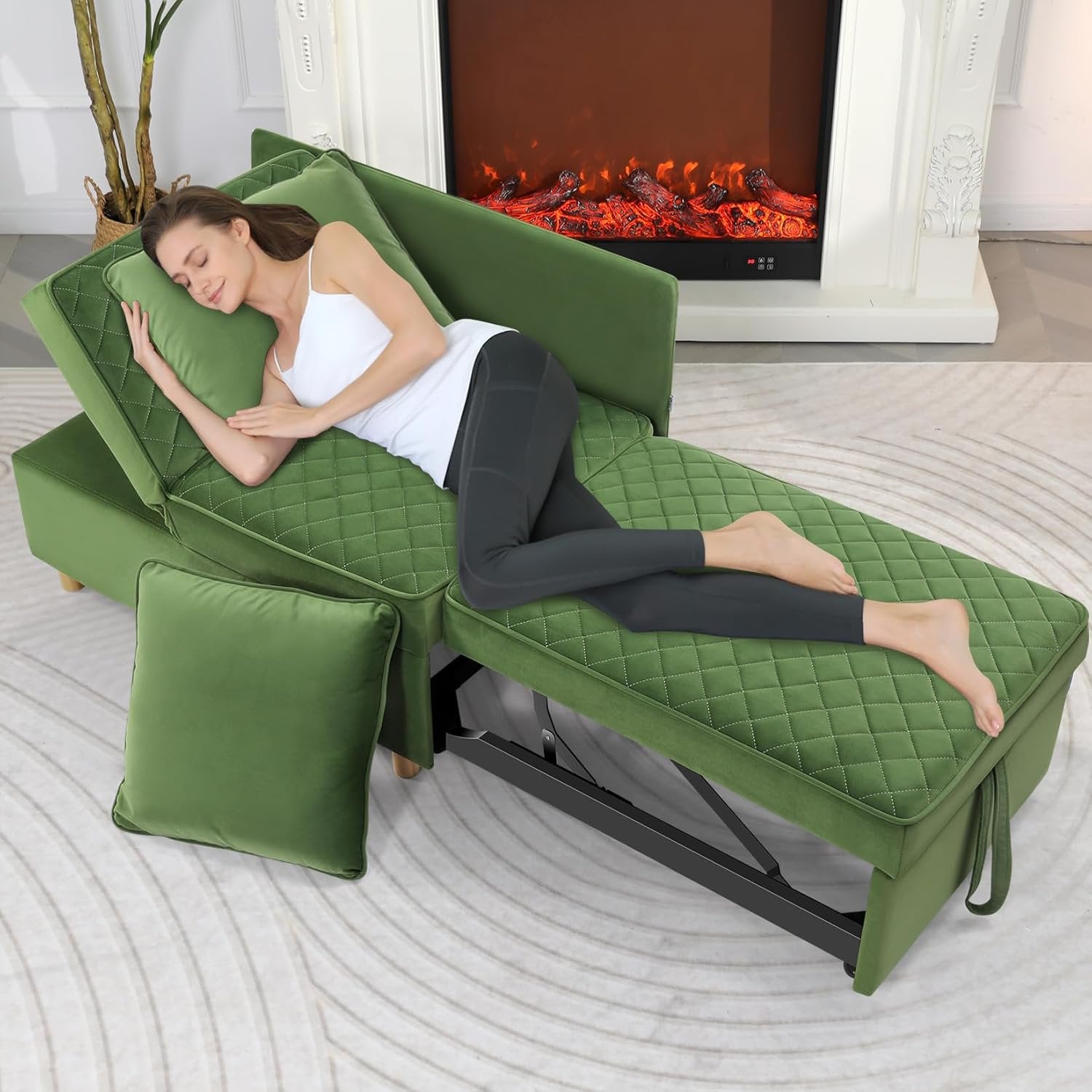 Farmdex Sleeper Sofa Chair Bed, 4 in 1 Convertible Armchair Sofa Bed, Single Recliner with Adjusable Backrest for Small Space, Small Couch for Bedroom Living Room, Velvet Green